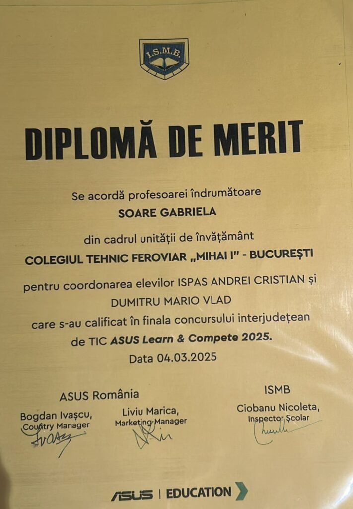 - Electronica si automatizari – Manaila Petrus – clasa a XI-a obtine mentiune la faza Nationala